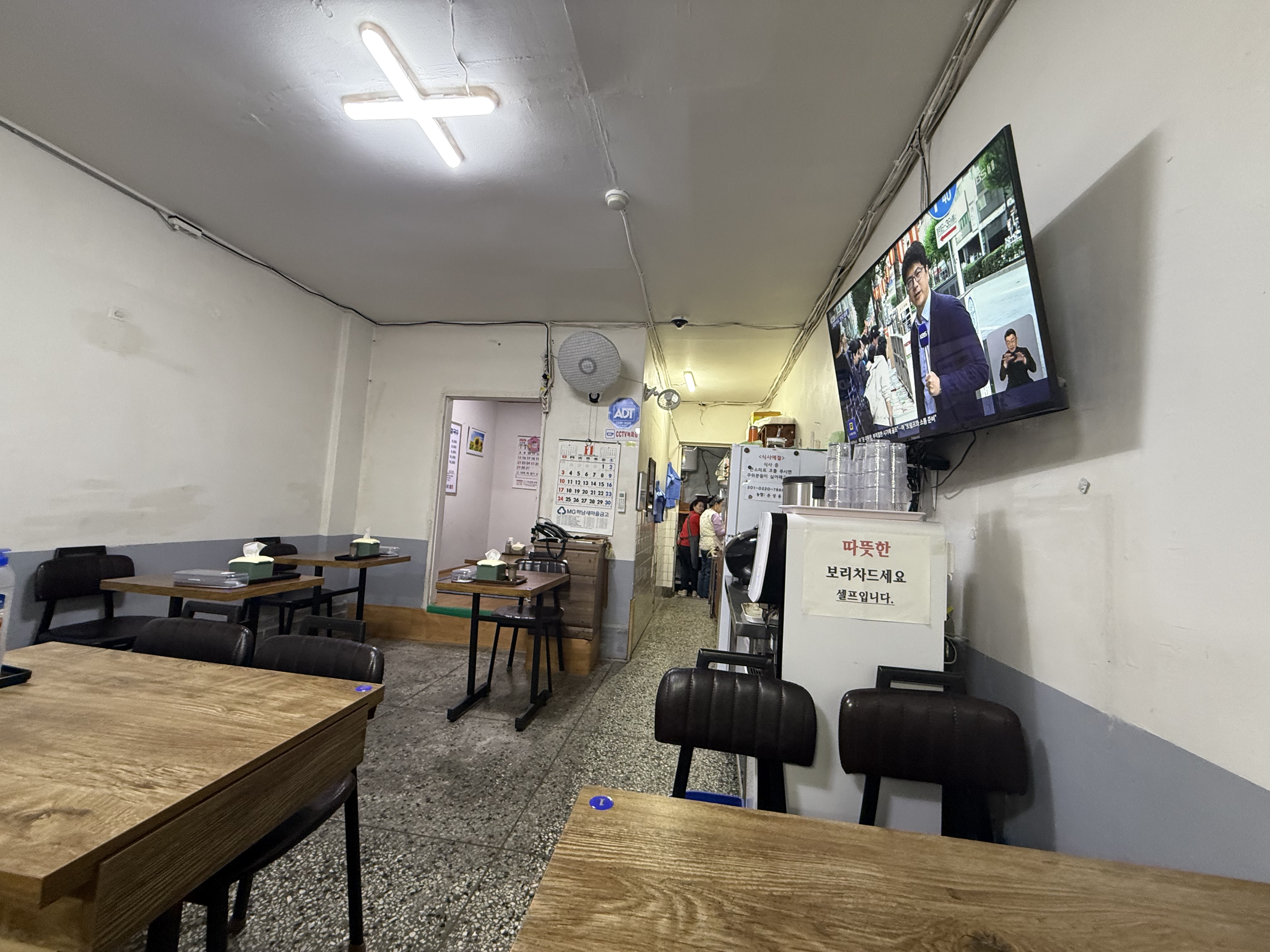 그리고 여기 여사장님께서 테이블에 수저를 채우시는 걸 봤는데