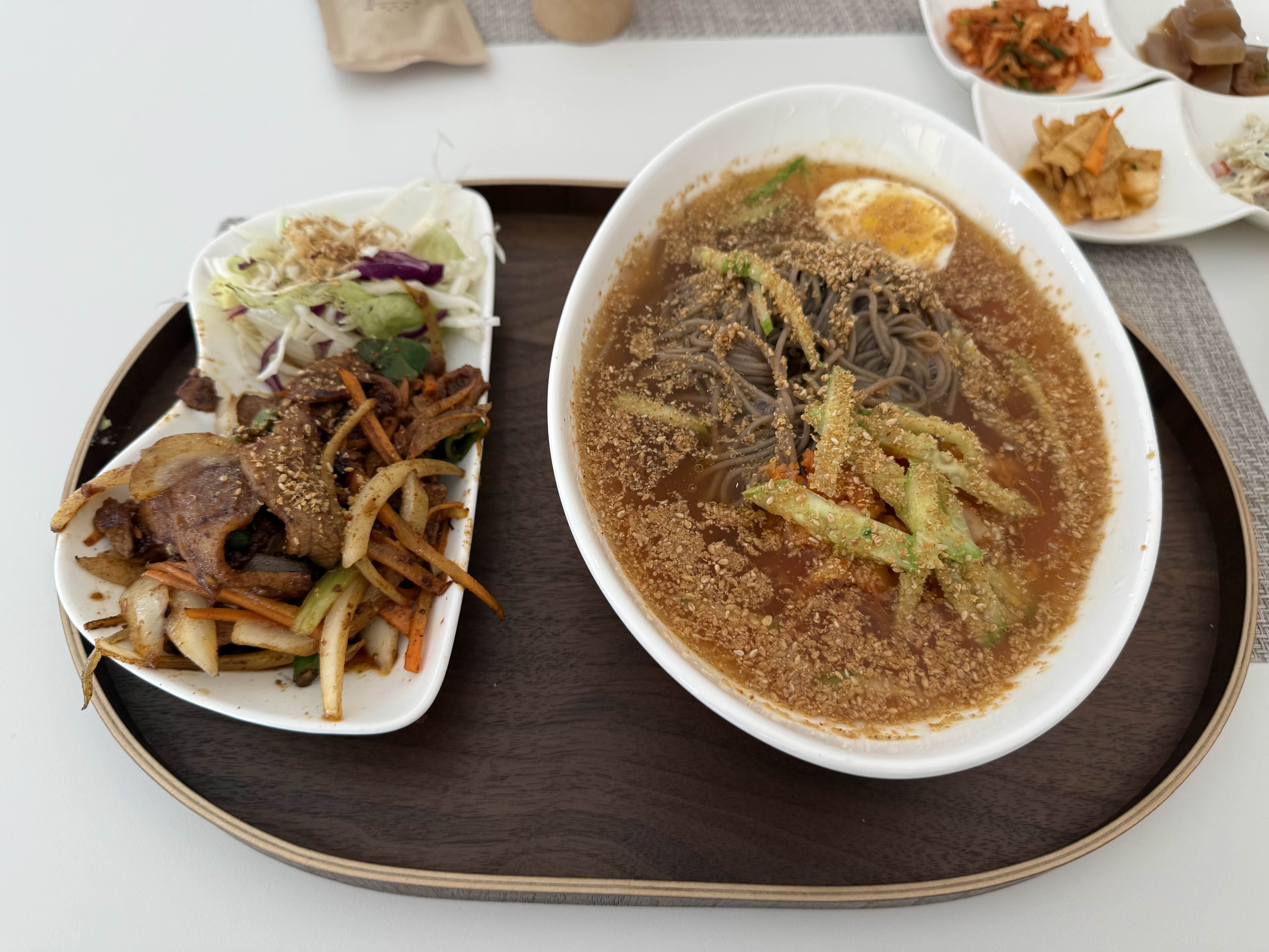 이어서 나온 냉메밀 김치말이국수 + 제육 세트입니다.