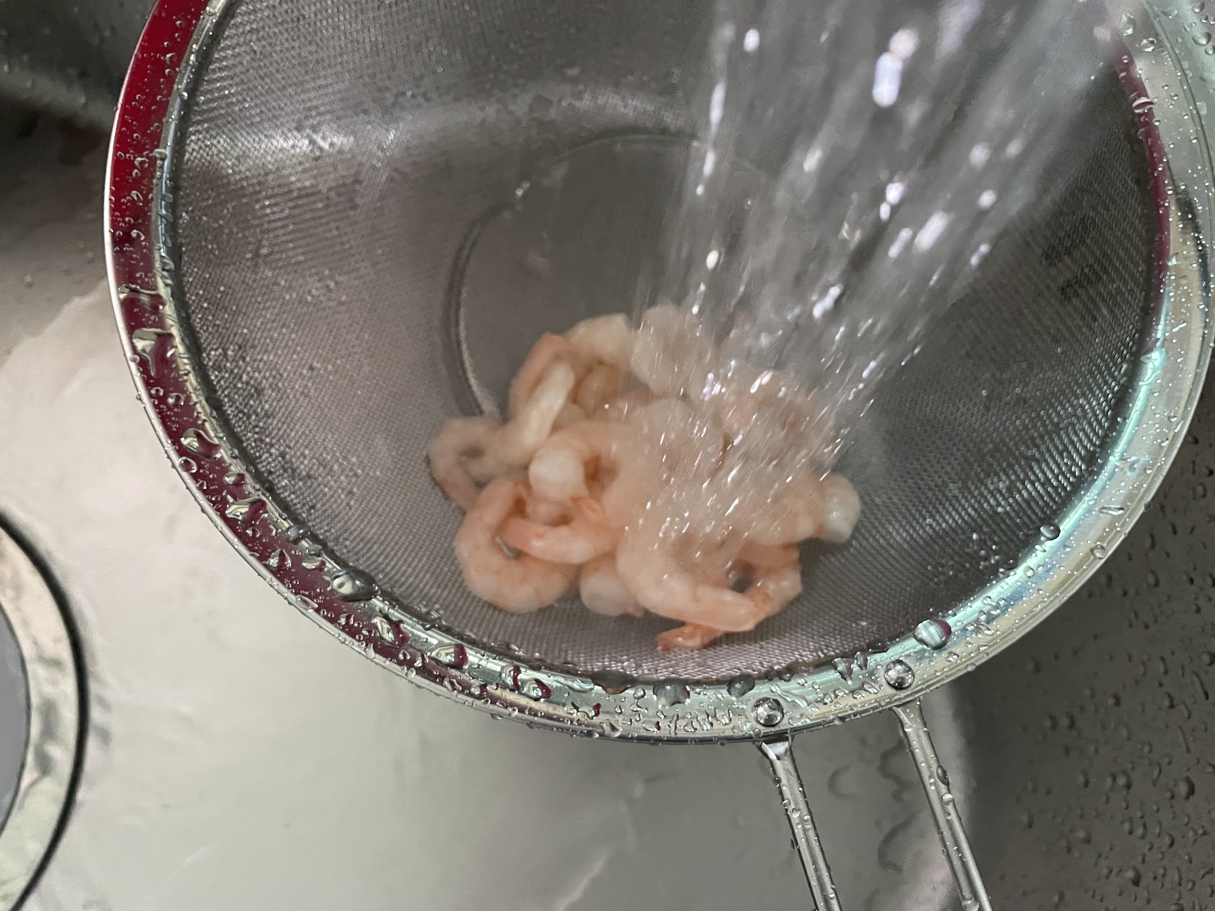 자숙 새우는 흐르는 물에 3분 정도 씻어주면 해동된다.