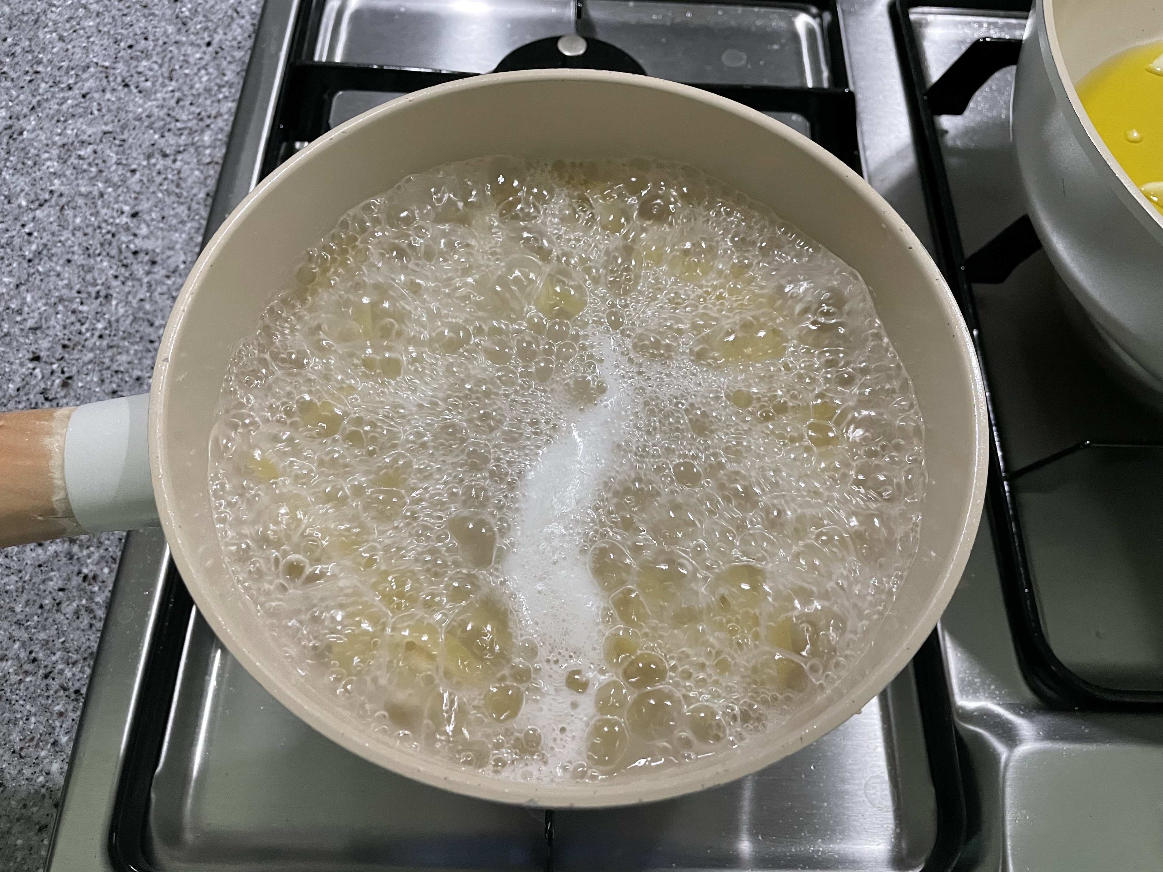 냄비에 물을 모자라지 않게 붓고, 강불로 끓인다.